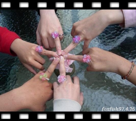 呵呵,這是我們姐妹的信物──幸運草戒指,都是自個兒動手編的哦!(還曾有人以為我們是手編工會組織呢,哈!)